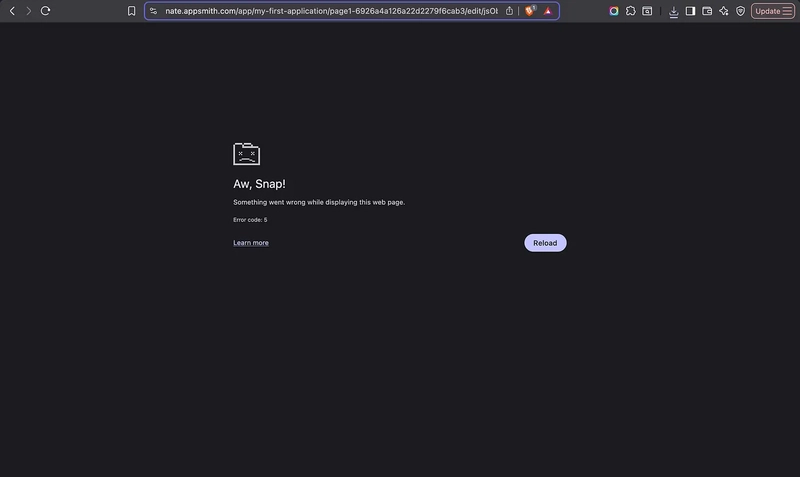 I added a table and tried to preview the full data in a new tab. The platform crashed instantly.
