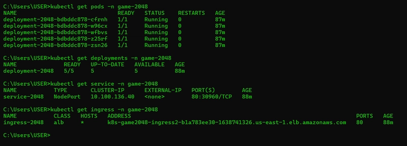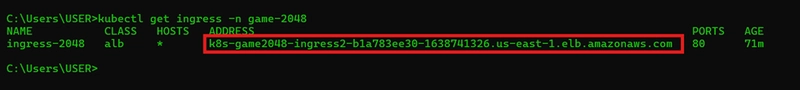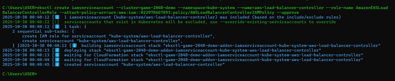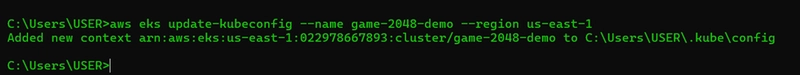 aws eks update-kubeconfig --name game-2048-demo --region us-east-1