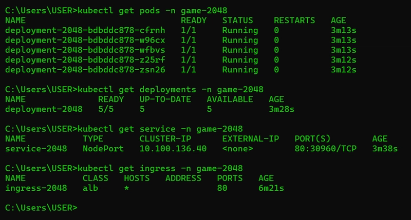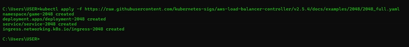 kubectl apply -f https://raw.githubusercontent.com/kubernetes-sigs/aws-load-balancer-controller/v2.5.4/docs/examples/2048/2048_full.yaml