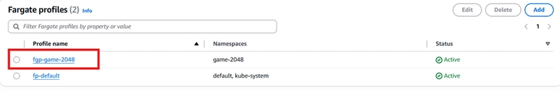 3. Create a new fargate profile βfgp-game-2048β under a new namespace βgame-2048β