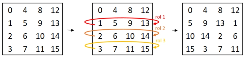 void shiftRows( uint8_t* state ) {