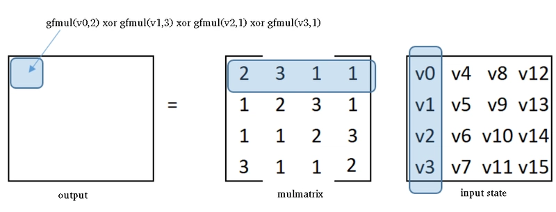 // apply gfmul, then xor the outputs together