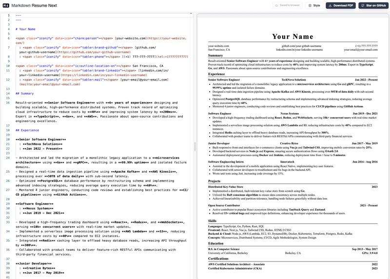 - You write your resume content in Markdown