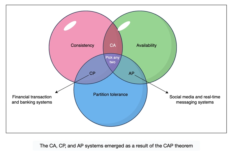 The CAP theorem is a fundamental theorem within the field of System Design. It states that a distributed system can only provide two properties simultaneously: consistency, availability, and partition tolerance. The theorem formalizes the tradeoff between consistency and availability when there’s a partition. The following illustration further explains the CAP theorem: