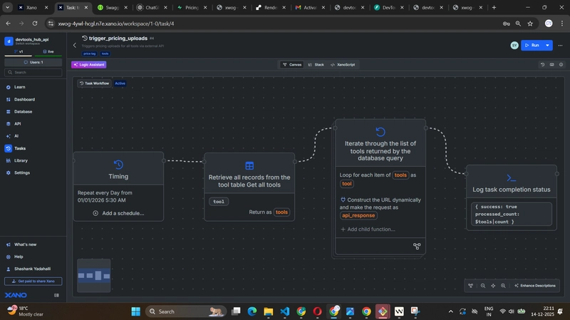 These all things have generated via xanoscript the TASKS, JOBS that trigger all fetch recent prices, analytics and trending score for products