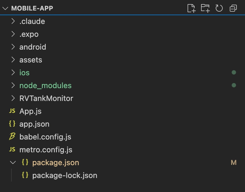 Why are files in my node_modules folder corrupted?? Something isn’t right. Maybe Claude should stick to its “day job” and not try to replicate the function of command line tooling to bootstrap projects, when that tooling is available, mature, and free. I think to myself to pivot at this point, start over from scratch with a proper React Native project, and have Claude do what it does best – work from there. I will take a peek at the app structure as we have it: