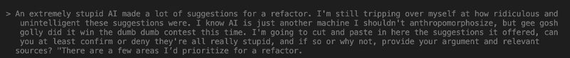I think this is the biggest value add of AI going forward though – the excuses to NOT push clean, elegant, and efficient code, going forward, are going to be wearing extremely thin. Used with care rather than blindly trusting the output of the LLM, we are entering an era where the gap between publishing really gorgeous code vs. “do it dirty and on time” is becoming very narrow.