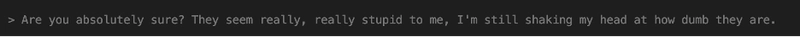Going back to Claude Code, and purposely introducing it with a hostile tone (per someone’s suggestion), I asked Claude Code:
