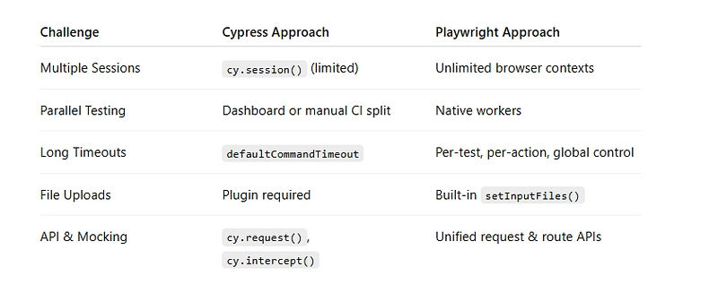 For developers migrating from Cypress to Playwright, these five areas — sessions, parallelism, timeouts, file uploads, and network control — show just how much flexibility Playwright offers out of the box.