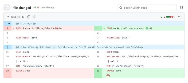 The other thing this prompt does is to explicitly ask to update the FROM command, and no other part of the Dockerfile.