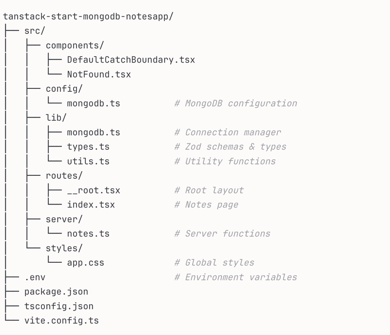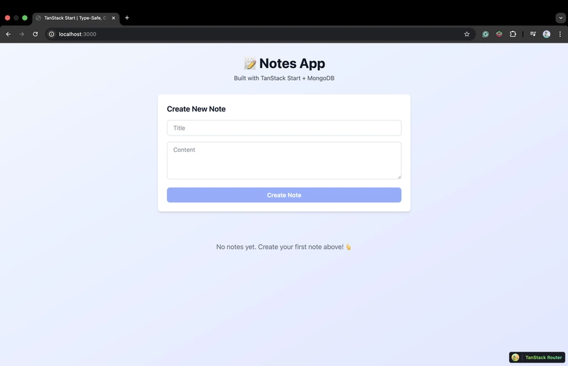 To build our Notes app (see the code repository), we’ll use TanStack Start alongside MongoDB. TanStack Start takes care of things like routing, server logic, and data fetching in a way that feels clean and predictable, and MongoDB gives us flexible, document-based storage that fits nicely into server functions. Put together, they give us a simple full-stack workflow without the overhead of a heavier framework. Let’s start building. 👇