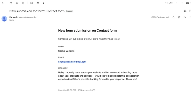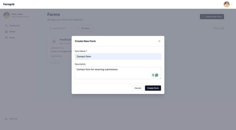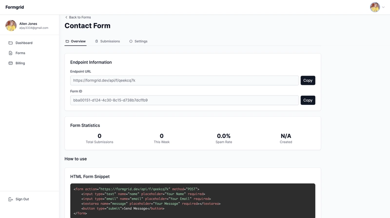 Whether you’re a solo developer, a small business, or a startup, Formgrid makes handling forms fast, simple, and secure.