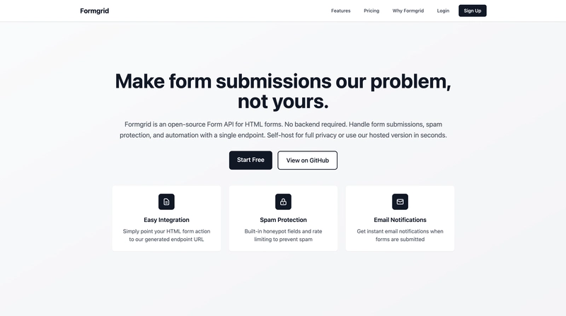 If you want a simple, open-source, privacy-first way to collect form submissions, give Formgrid a try.