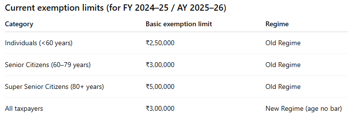 • Your total income is below the basic exemption limit (₹2.5 lakh in the old regime, ₹3 lakh in the new regime).
