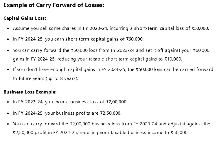 In India, taxpayers are allowed to carry forward losses from a financial year to future years to offset taxable income in those years. This helps reduce the tax liability in subsequent years. The process of carrying forward losses can be done for both individuals and corporates, with specific provisions under the Income Tax Act, 1961.