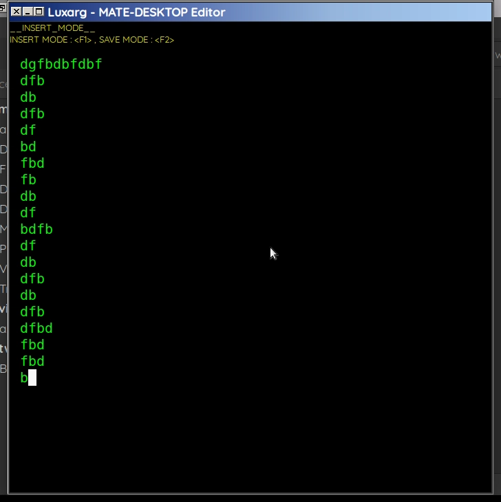 Luxarg is a text editor made with GJS (GNOME JavaScript). It has a dark sci-fi look with green text. It works well on MATE Desktop. You can use the keyboard to control it easily.