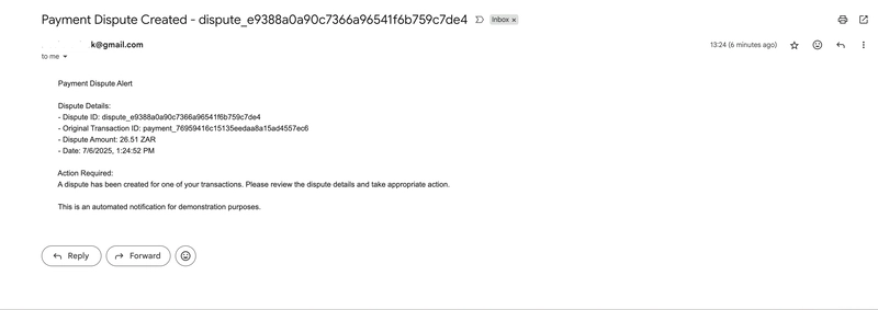 Email notification sent for dispute: dispute_e9388a0a90c7366a96541f6b759c7de4