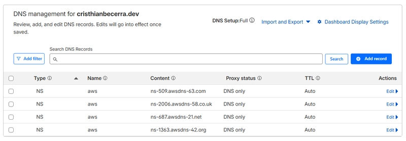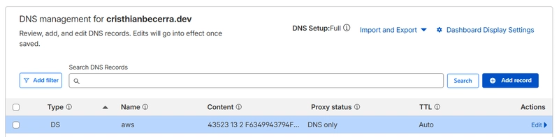 Con esto se completa la confianza entre Amazon Route 53 y Cloudflare.