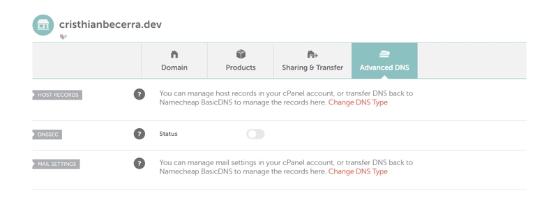 1. En Namecheap, selecciona el dominio correspondiente y dirígete a la pestaña Advanced DNS.