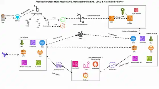 I designed a production-grade multi-region AWS architecture to demonstrate how cloud-native platforms achieve high availability, safe deployments, and resilient disaster recovery using Kubernetes and DevOps best practices. ๐๐ฒ๐ ๐๐ถ๐ด๐ต๐น๐ถ๐ด๐ต๐๐: โข Automated CI/CD pipelines pushing images to Amazon ECR โข Canary deployments with automated rollback on EKS โข Multi-region EKS (Active + Warm Standby) โข Route…
