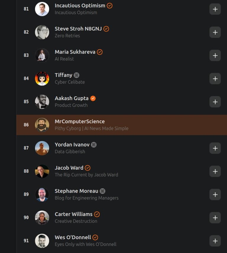 My newsletter (Pithy Cyborg | AI News Made Simple) just made it into the top 100 Rising in Tech on Substack. Funny thing is, I don’t have any fancy guru or premium badges, lol. At any moment, I half-expect security to show up and kick me out for a lack of credentials. “Sir… we don’t…