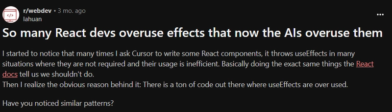https://www.reddit.com/r/webdev/comments/1llwbwr/so_many_react_devs_overuse_effects_that_now_the/