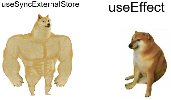 Read more about useSyncExternalStore in my blogpost: https://dev.to/paripsky/build-your-own-react-state-management-library-in-under-40-lines-of-code-with-typescript-support-hji