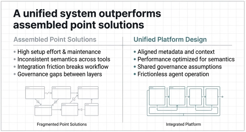 Better outcomes come from systems designed as one unit. Metadata stays aligned. Semantics remain consistent. Performance features work with context rather than around it.