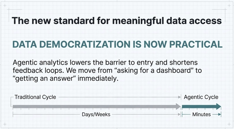 Agentic analytics changes how organizations work with data. It lowers the barrier to meaningful analysis. It shortens feedback loops between questions and answers.