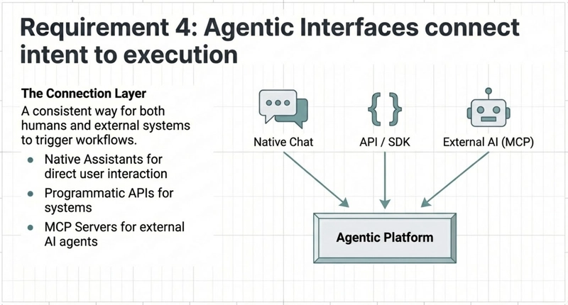 An agentic interface may be a built-in AI assistant or a programmatic interface. It can expose tools through an MCP server. It can provide pre-built agent skills that bundle common analytics tasks.