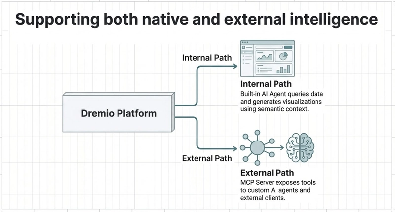 Dremio also exposes these same capabilities through an MCP server. Custom AI agents and popular AI clients can access them where MCP is supported. This allows teams to embed analytics intelligence into their own workflows.