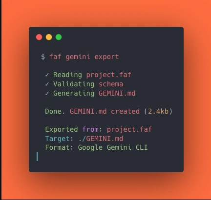 That's it. Your .faf context becomes a native GEMINI.md that Gemini CLI understands.